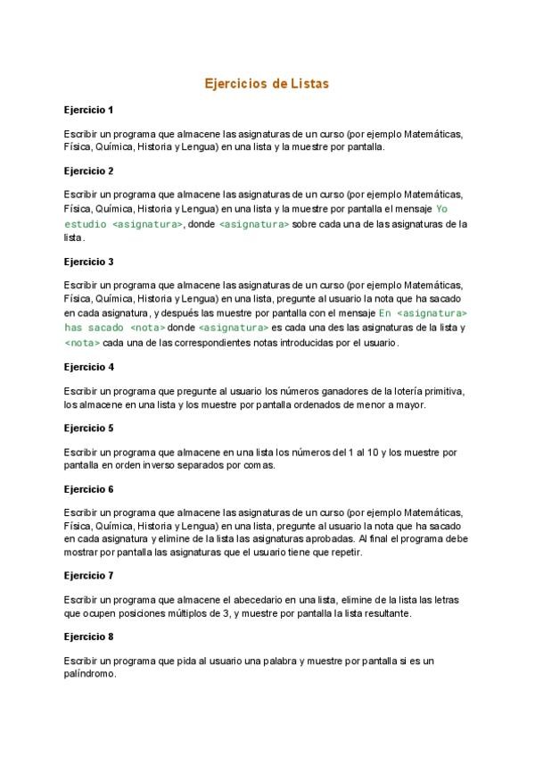 Ejercicios de listas para practicar en todos los lenguajes y aprender a usarlas.