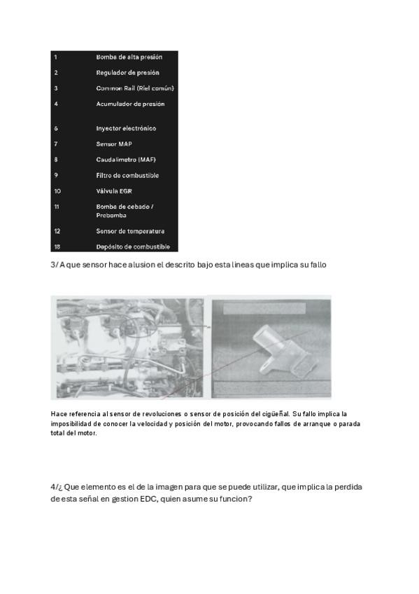 algunos apuntes o examen de sistemas de inyección t3-5 de motores , Mil gracias
