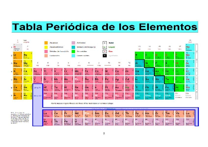 Tabla periódica de los elementos que suelen preguntar en 2º de Educación Secundaria Obligatoria (E.S.O)