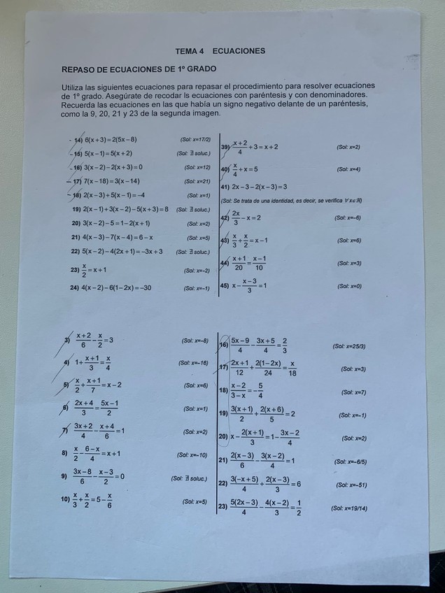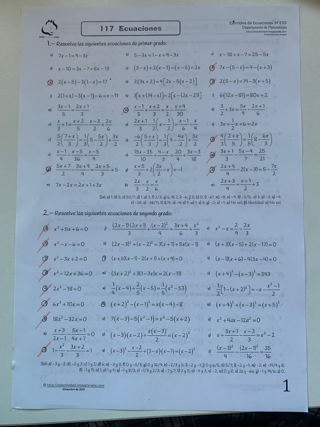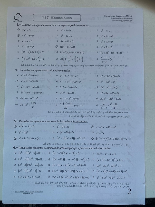 Soluciones de varias ecuaciones 2º Educación Secundaria Obligatoria (E.S.O)