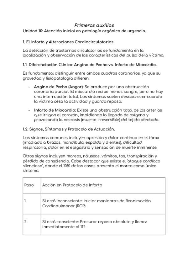 Primeros auxilios. Unidad 10: Atención inicial en patología orgánica de urgencia.
