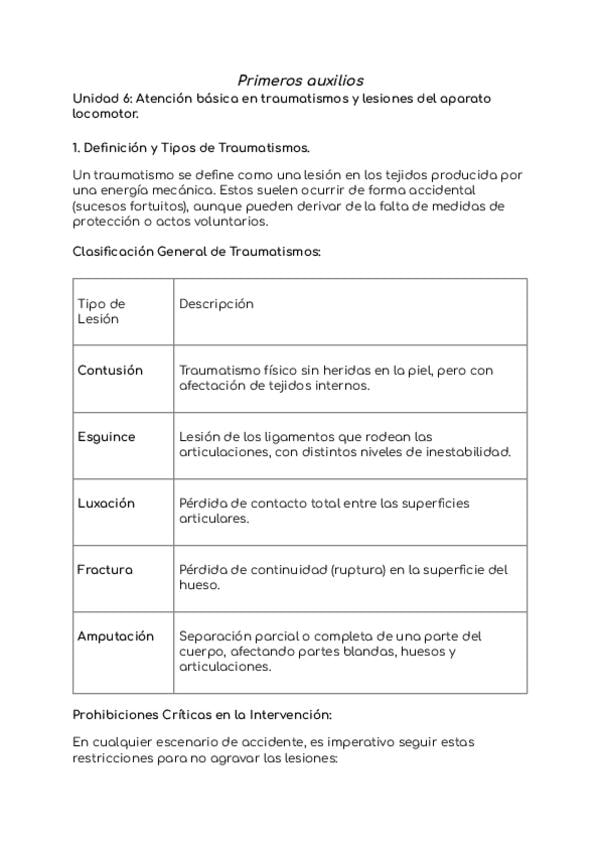 Primeros auxilios. Unidad 6: Atención básica en traumatismos y lesiones del aparato locomotor.