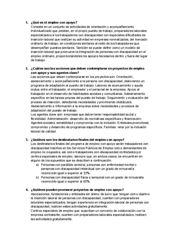 Ejercicios sobre el empleo con apoyo que también puede utilizarse para apuntes.