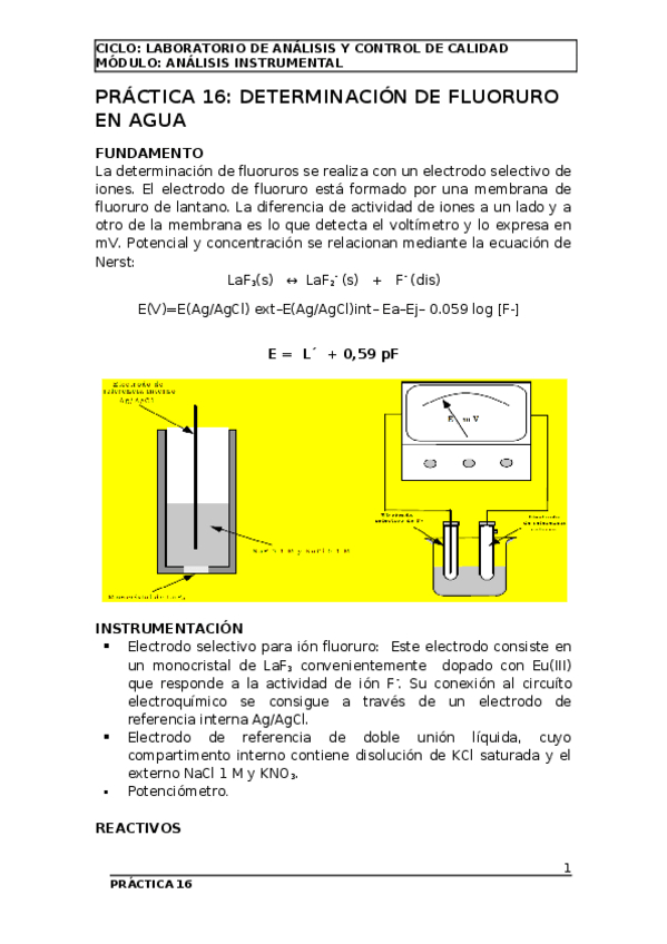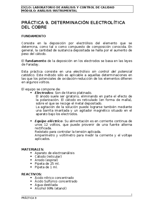Practicas de la asignatura de Análisis Instrumental grado superior laboratorio y control de calidad