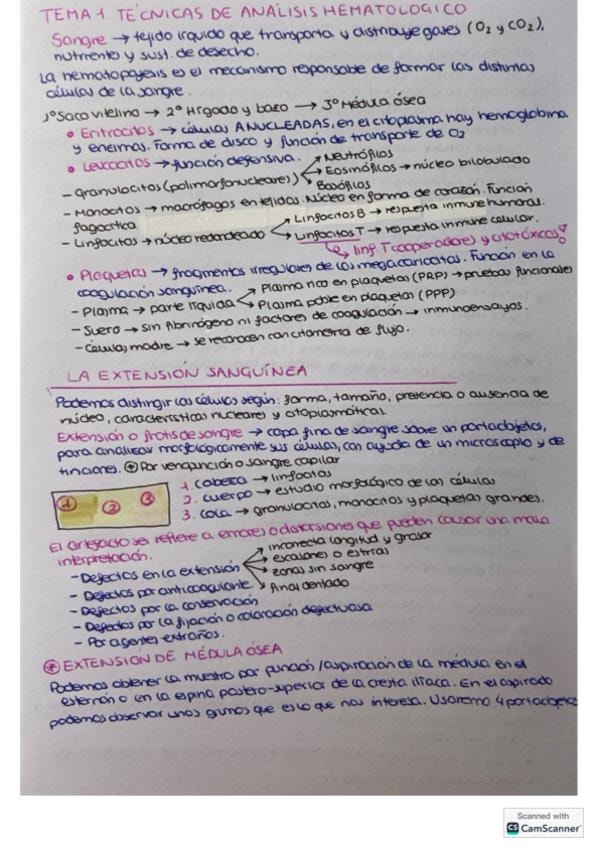 Resumen de los temas de la asignatura de Técnicas de Análisis Hematológico del grado superior de Laboratorio Clínico y Biomédico. Podéis encontrar el temario sin resumir en mi perfil también.