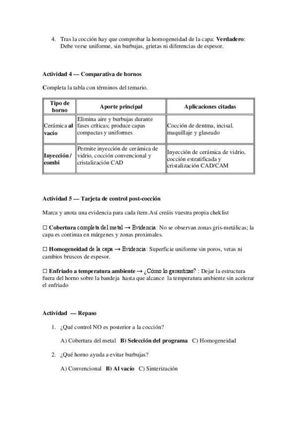He publicado nuevos ejercicios de Restauraciones y Recubrimientos Estéticos: Actividades-Cocion-en-el-horno.pdf