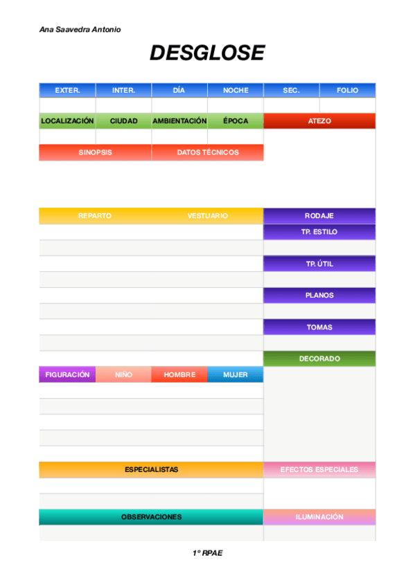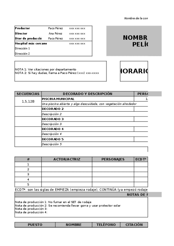 Holaaa, os dejo algunos ejemplo o plantillas para la documentación de rodaje y planificación.