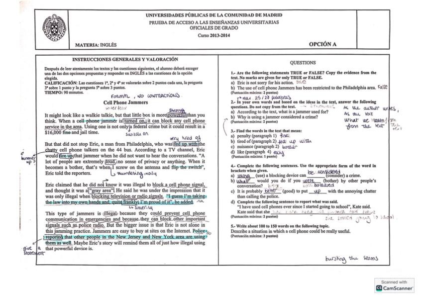 Examen d'integració de segon de batxillerat fet per mi i corregit pel meu professor.