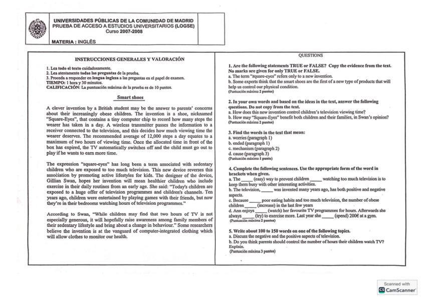 He publicado nuevos examenes de Inglés: Modelos PAU, Madrid