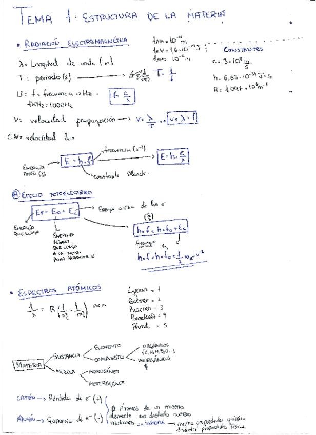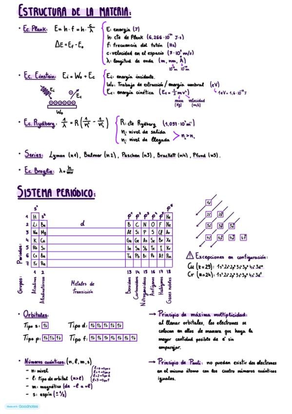 Apuntes muy útiles que me ayudaron a sacar química y la PAU de la mejor forma. Incluye las fórmulas para hacer problemas de ondas, explicación del principio de exclusión de Pauli, números cuánticos y definiciones muy importantes en la Pau de Energía de Io