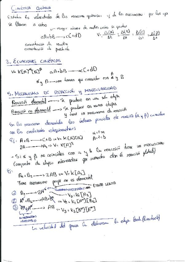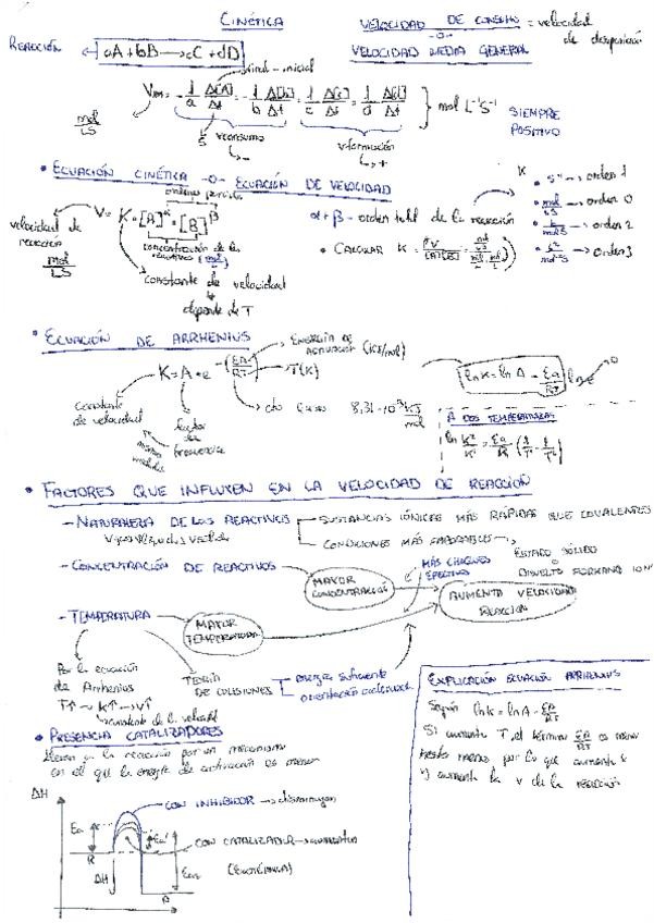 Apuntes perfectos para afrontar el tema de cinética química tanto para examenes parciales como para la prueba de acceso a la universidad. En el documento incluye lo necesario para saber hacer ejercicios relacionados con la ecuación de Velocidad media gene