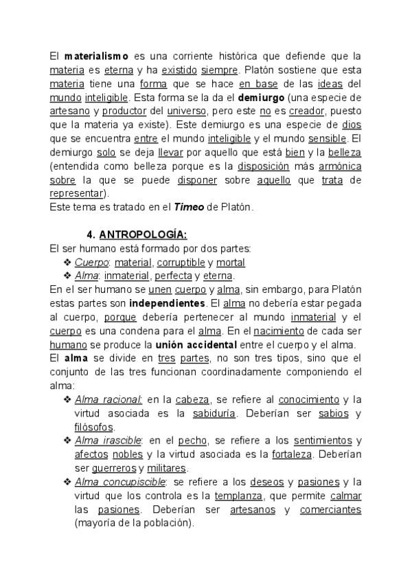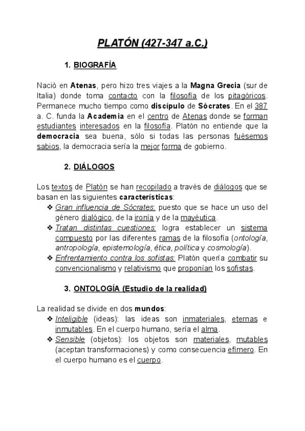 Apuntes sobre las diferentes ramas de la filosofía de Platón. Adecuados para la realización del examen PAU de la Comunidad de Madrid del curso 2025/2026.