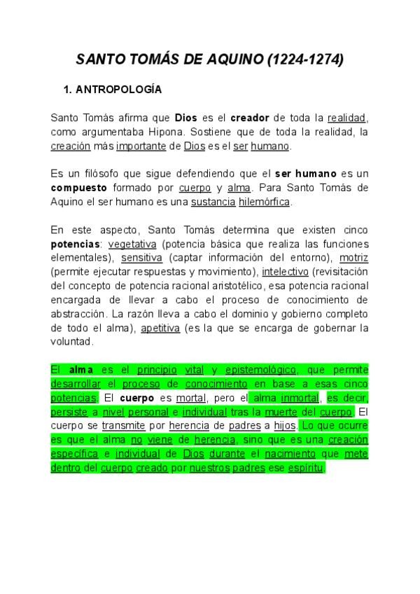 Apuntes sobre las diferentes ramas de la filosofía de Santo Tomás de Aquino. Adecuados para la realización del examen PAU de la Comunidad de Madrid del curso 2025/2026.