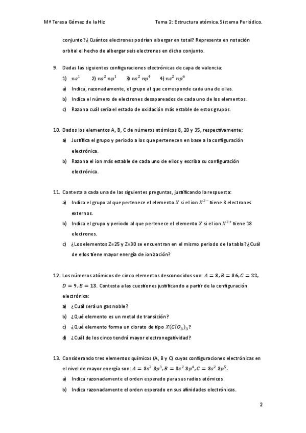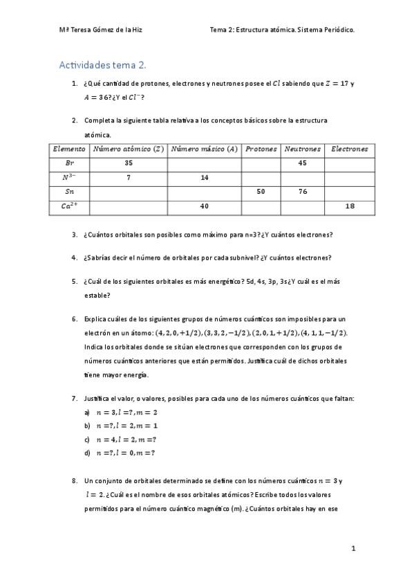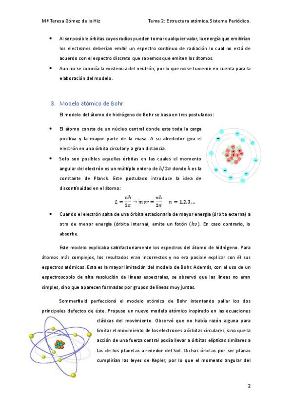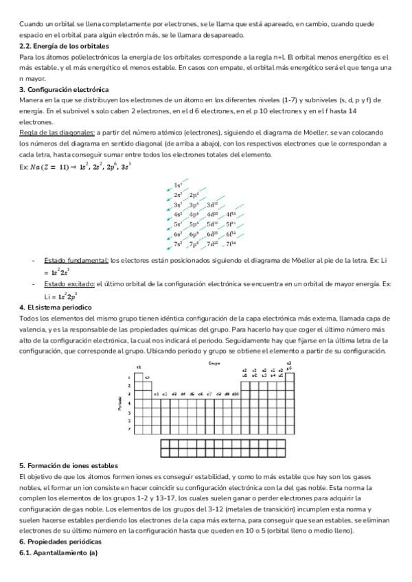 Resumen del tema del átomo, contiene: - Estructura atómica. - Orbitales atómicos y números cuánticos. - Configuración electrónica. - Sistema periódico. - Formación de iones estables. - Propiedades periódicas.