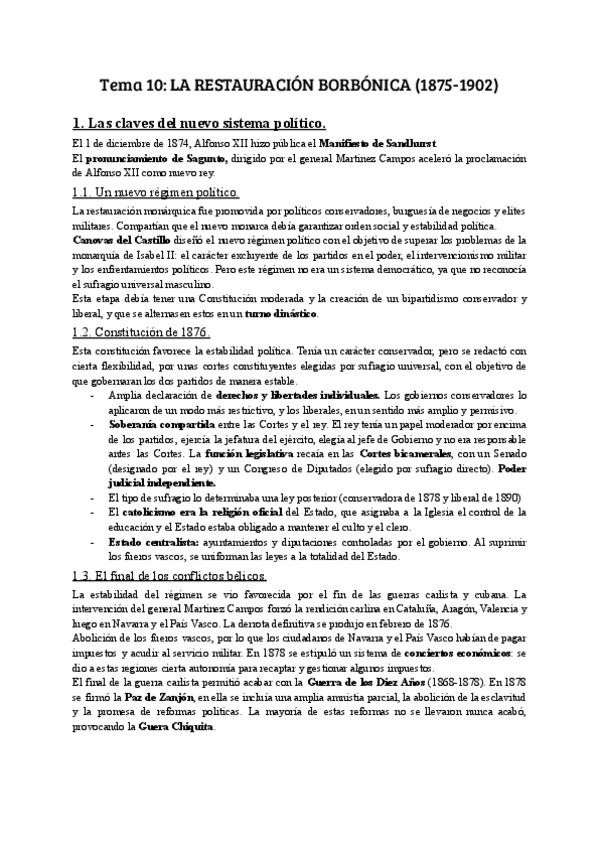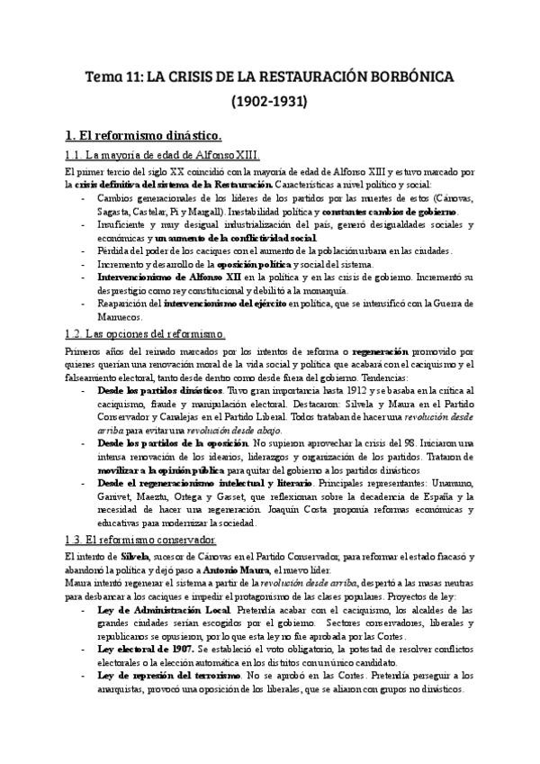 Apuntes del tema de la crisis de la Restauración Borbonica, Historia de España