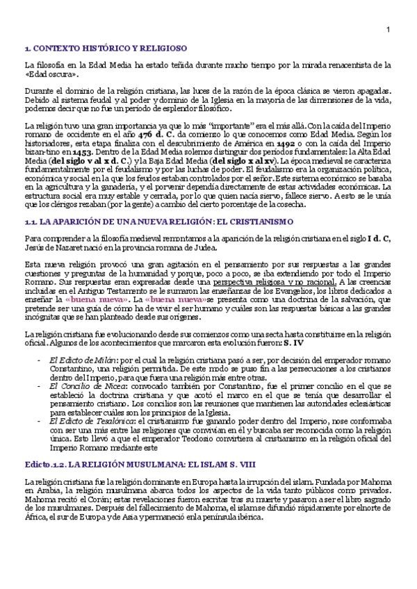 Apuntes perfectos (con contexto, filósofos, sus ideas, conceptos...) para un examen de filosof8a medieval/cristiana.