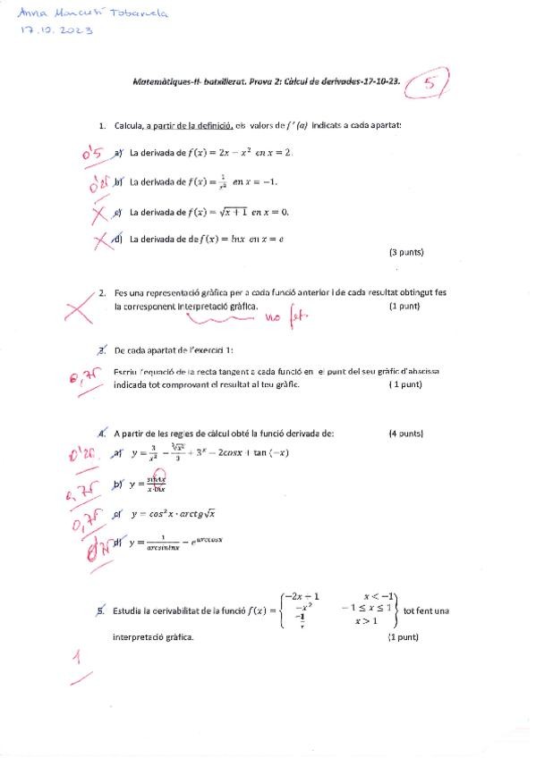 Examen de derivació de segon de batxillerat fet per mi i corregit pel meu professor.