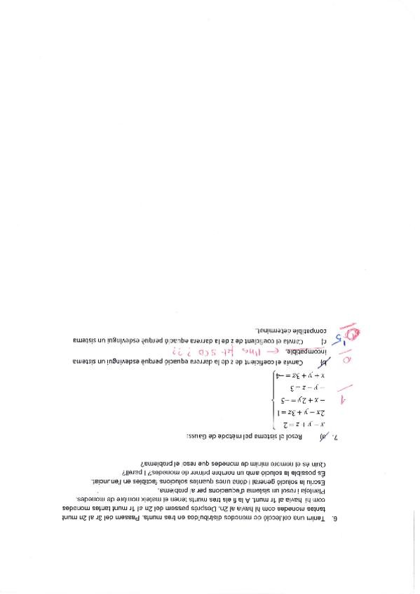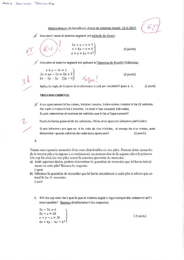 Examen de sistemes lineals de segon de batxillerat fet per mi i corregit pel meu professor.