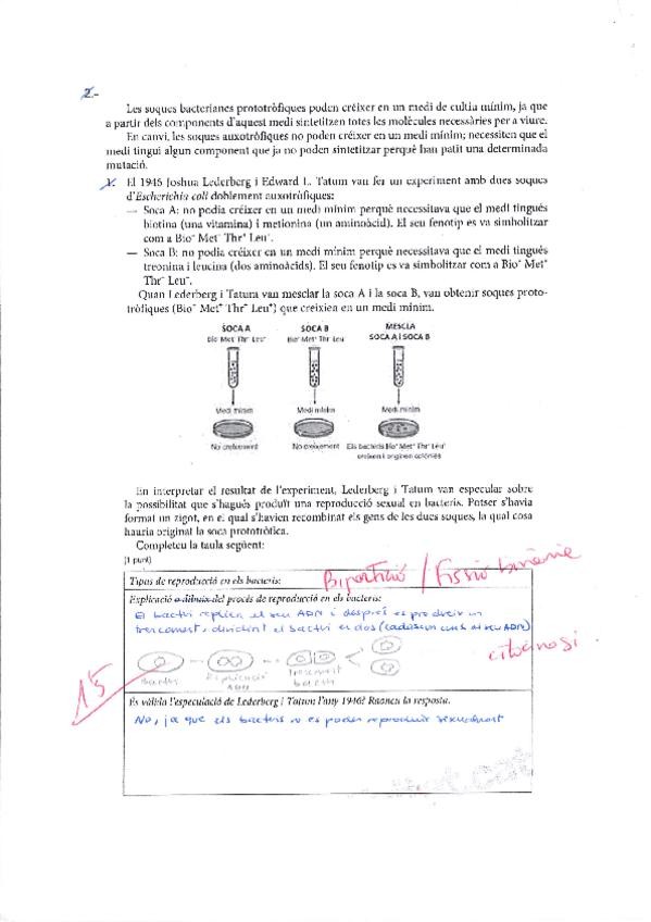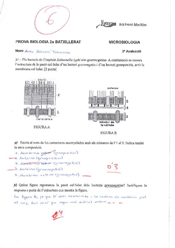 Examen de Microbiologia amb exercicis de PAU anteriors fet per mi i corregit pel meu professor.