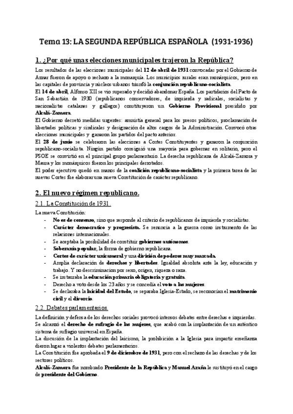 Apuntes del tema de la Segunda República Española, Historia de España