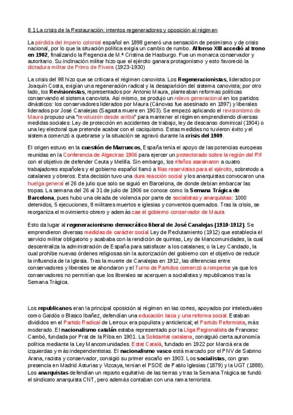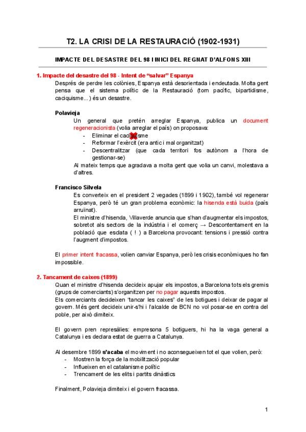 Apunts Història d'Espanya: La Crisi de la Restauració (1902 - 1931).