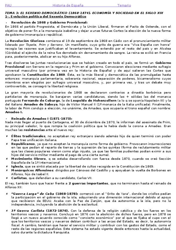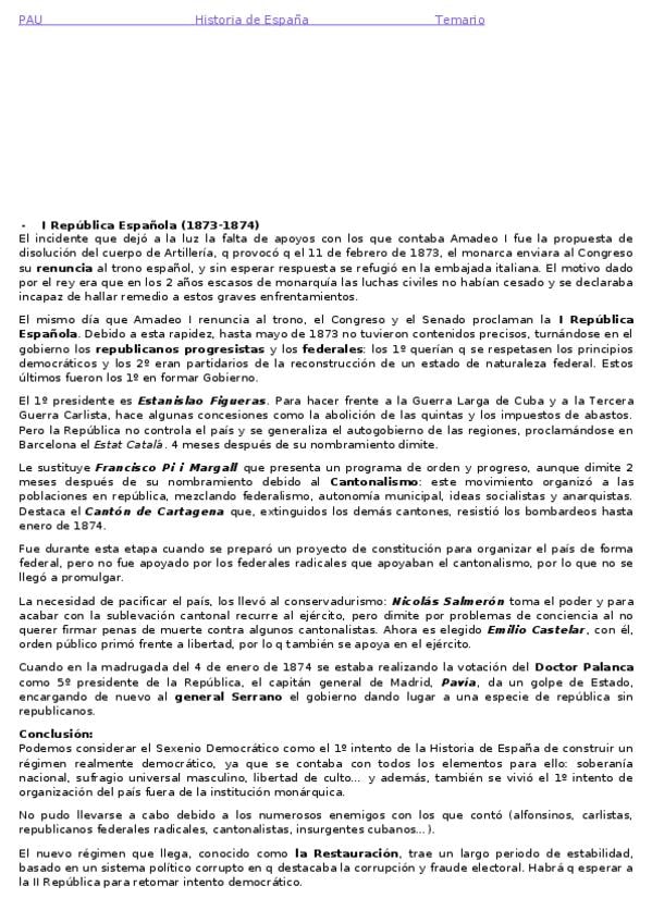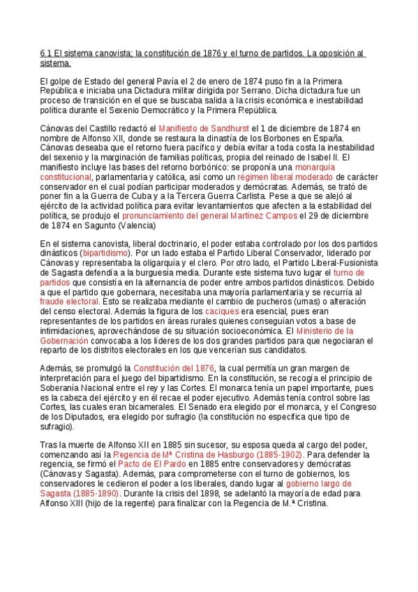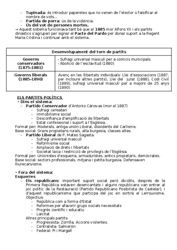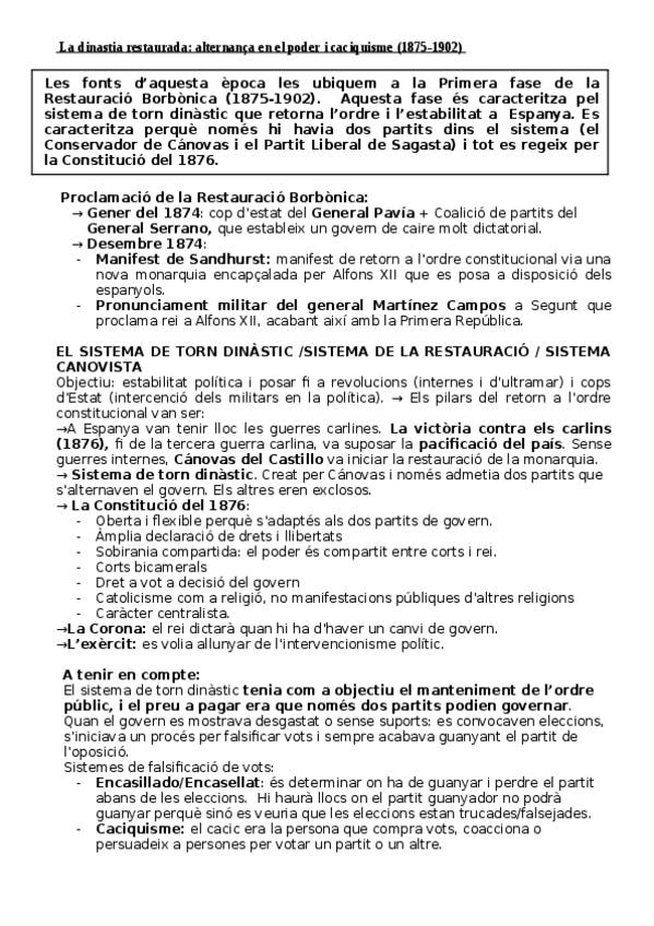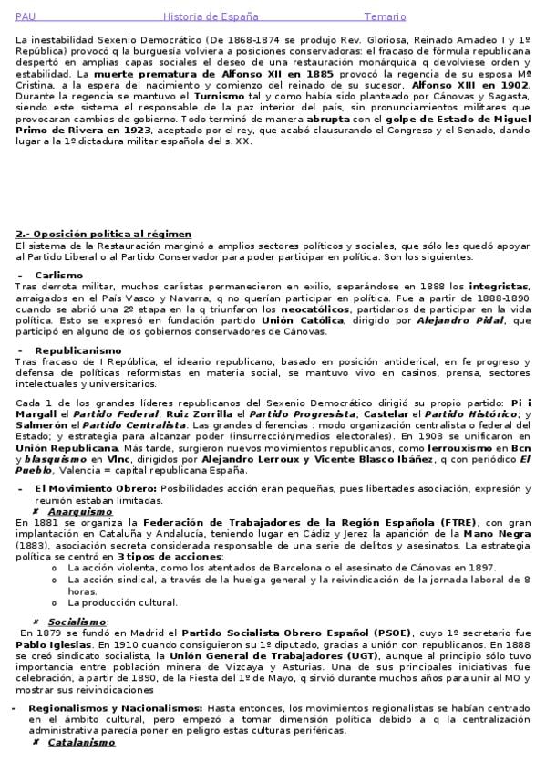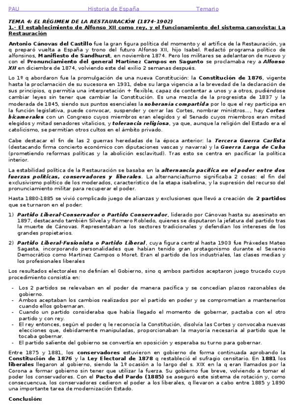 Resumen Tema 4: El régimen de la restauración. Corregido. PAU
