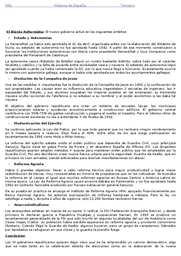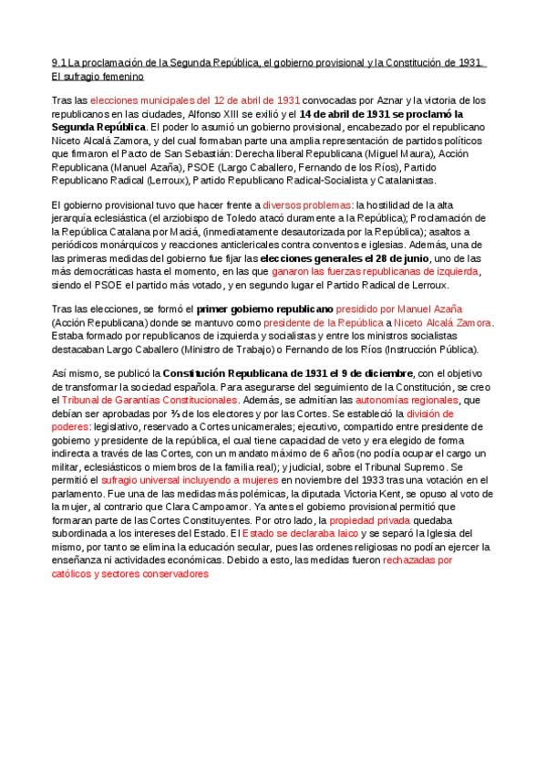 Resumen Tema 6: La II República Española. Corregido. PAU