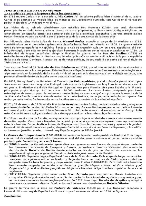 Resumen Tema 1: Crisis del Antiguo Régimen. Corregido. PAU 2025