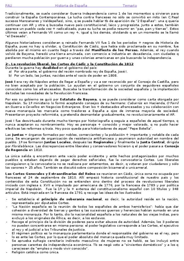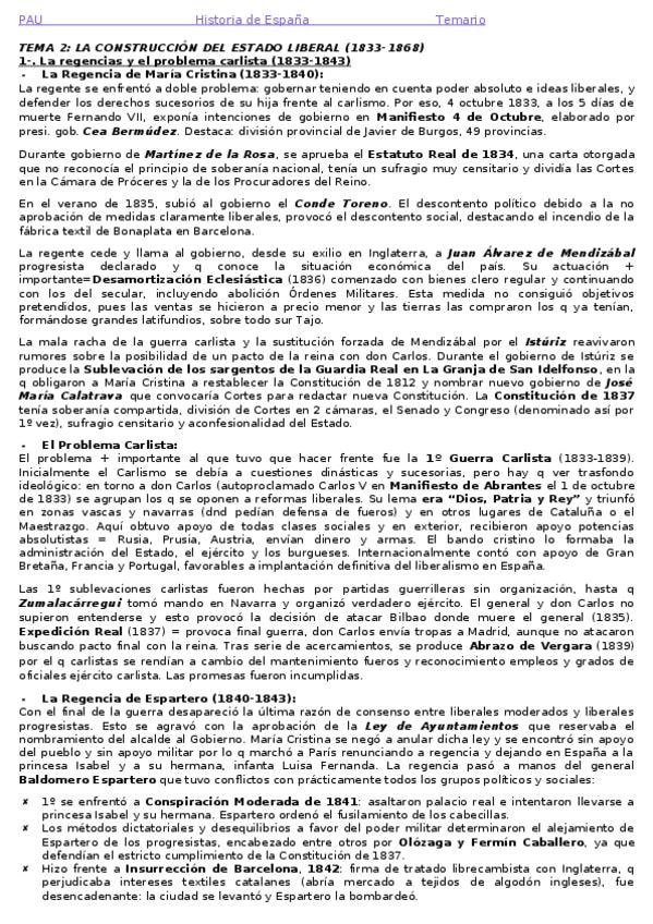 Resumen Tema 2: La construcción del Estado liberal. Corregido. PAU