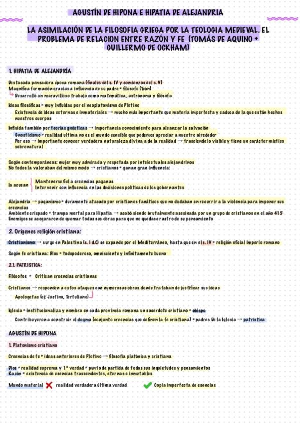 Resumen detallado sobre los siguientes núcleos temáticos La asimilación de la filosofía griega por la teología medieval. El problema de la relación entre fe y razón. (NT) - Agustín de Hipona e Hipatia de Alejandria
