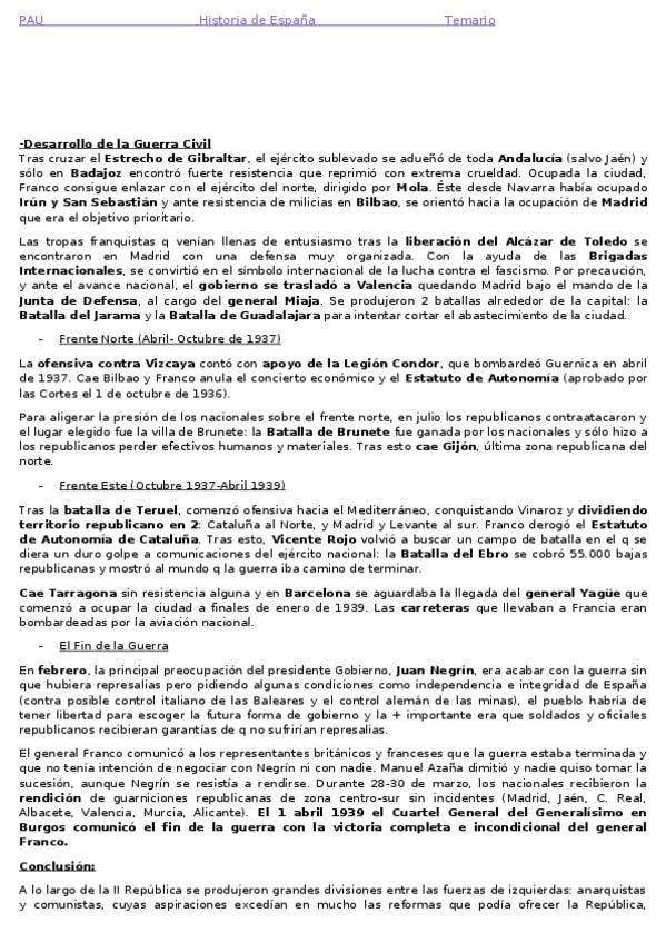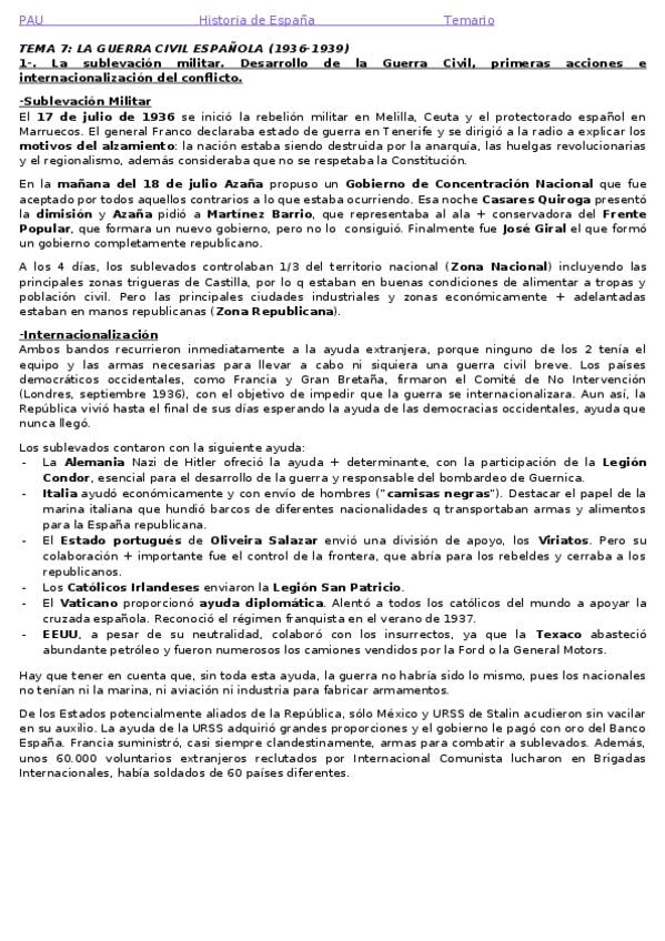 Resumen Tema 7: La Guerra Civil Española. Corregido. PAU