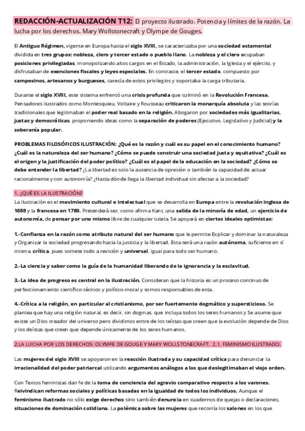 REDACCIÓN y ACTUALIZACIÓN Filosofía Tema 12 El proyecto ilustrado. Potencia y límites de la razón. La lucha por los derechos. Mary Wollstonecraft y Olympe de Gouges.