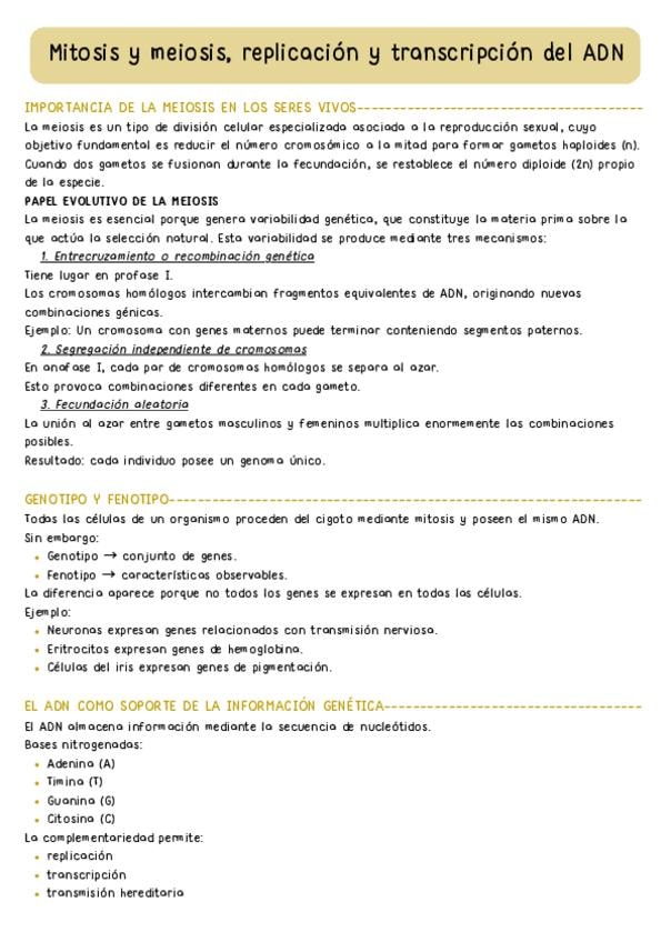 Hay dos temas en este documento, Mitosis y meiosis y la replicación y transcripción del ADN. Nivel 2 bachillerato para la PAU