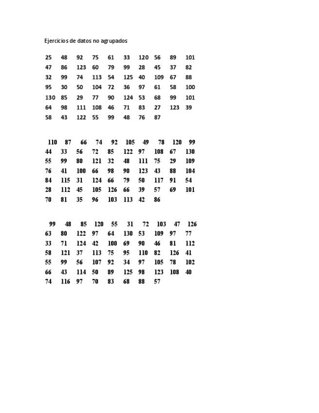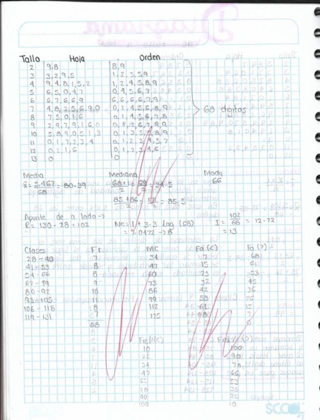 Ejercicios de diagrama de tallo y hoja y la distribución de frecuencias de datos agrupados por el método de Sturges y diagramas de "Ojivas"