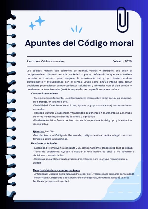 Es la definición de lo que es el código moral con características claves, sus funciones principales y con algún ejemplo