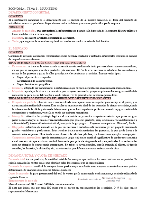 Resumen del tema del marketing (unidad 8) con todos los contenidos que pueden entrar en Evau/Abau de ese tema. En el libro aparece incompleto.