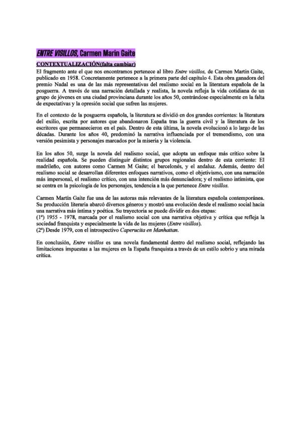 Contextualizaciones de Nada, Entre visillos, Cien años de soledad, Mar, Yo voy soñando caminos, Insolación, No decía palabras, Columpio, La casada infiel, Caracol para la PAU de Aragón