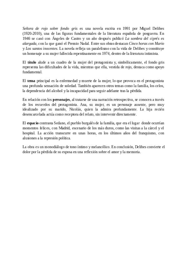 Valoración crítica de Señora de rojo sobre fondo gris de Miguel Delibes. Sirve para responder a la pregunta de la valoración crítica posterior a 1974 en la PAU Madrid 2026