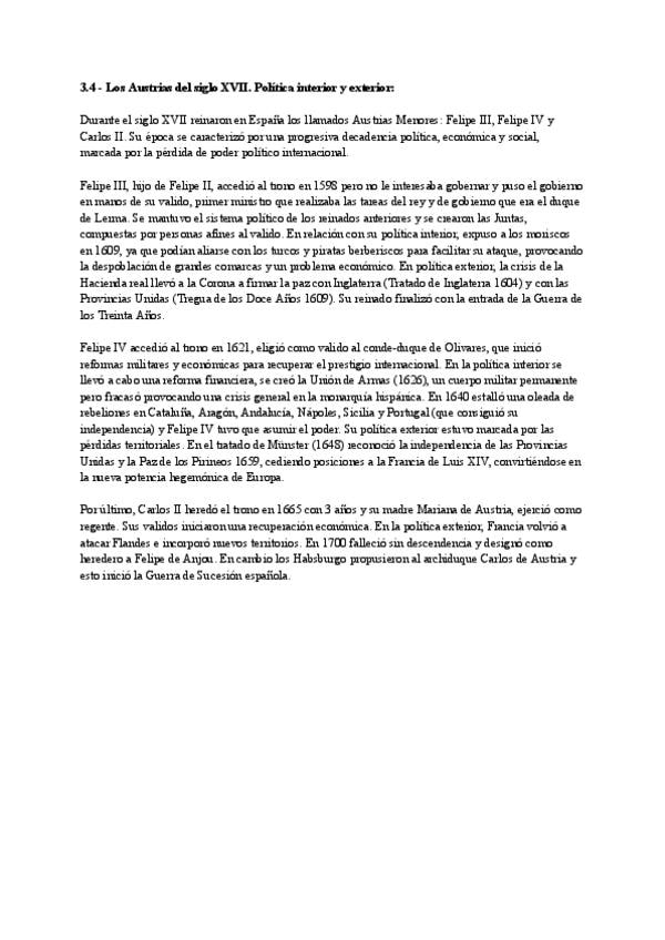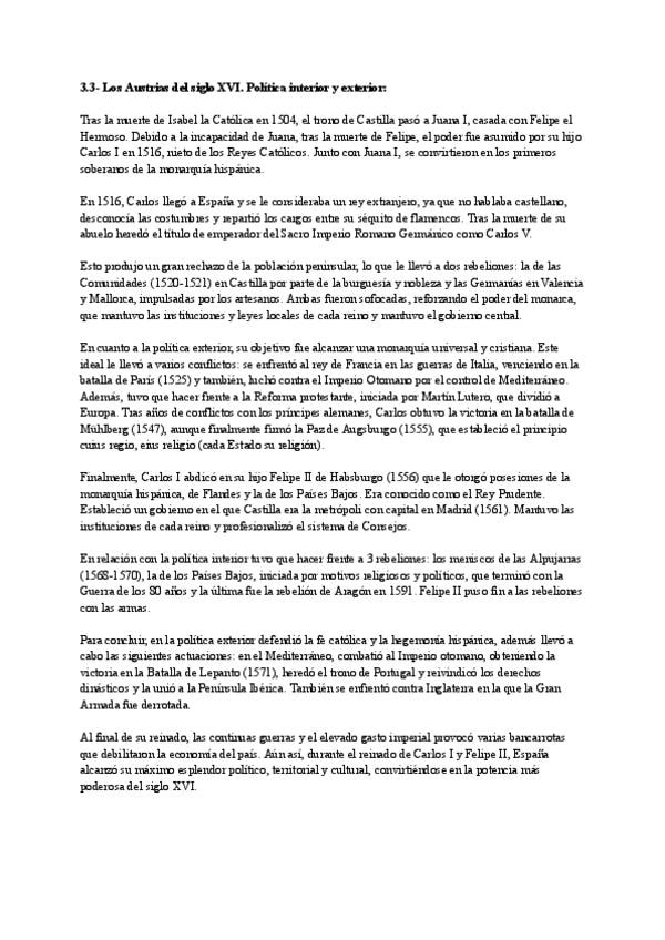 Con estos apuntes he sacado la mejor nota en historia. Pertenecen al bloque 3, en concreto el 3.3: "Los Austrias del siglo XVI. Política interior y exterior", el 3.4 "Los Austrias del siglo XVII. Política interior y exterior", el 3.5 "Sociedad, economía y