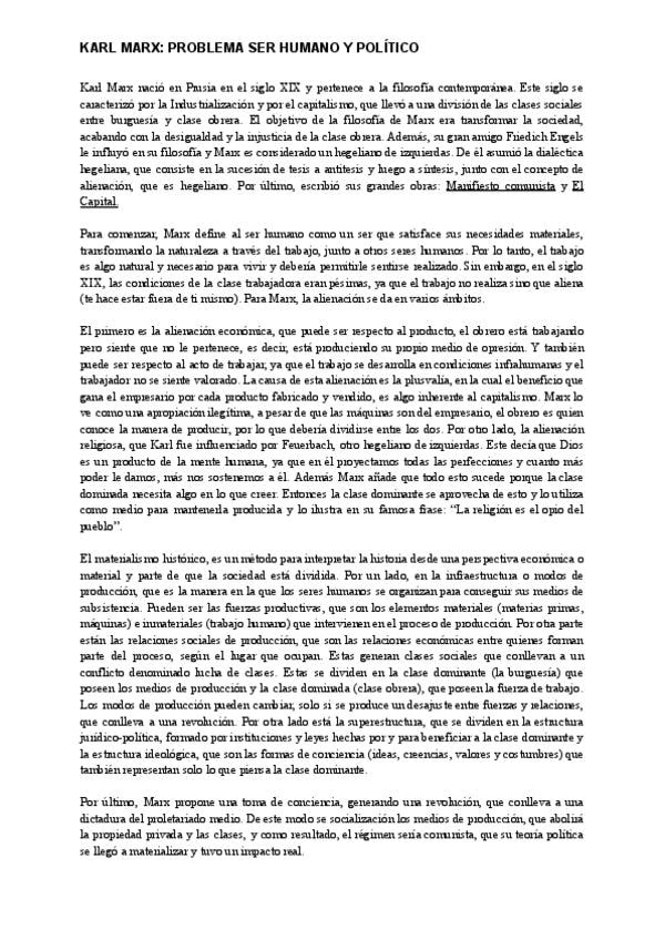 Apuntes de Karl Marx, filósofo contemporáneo. He sacado un sobresaliente con estos apuntes.