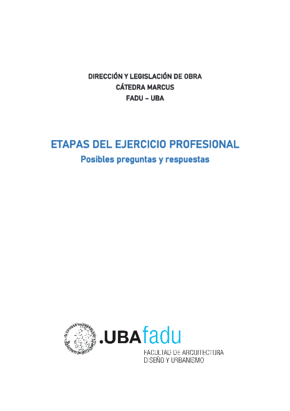 Posibles preguntas y respuestas sobre Etapas del Ejercicio Profesional. Dirección y Legislación de Obra, Cátedra Marcus.