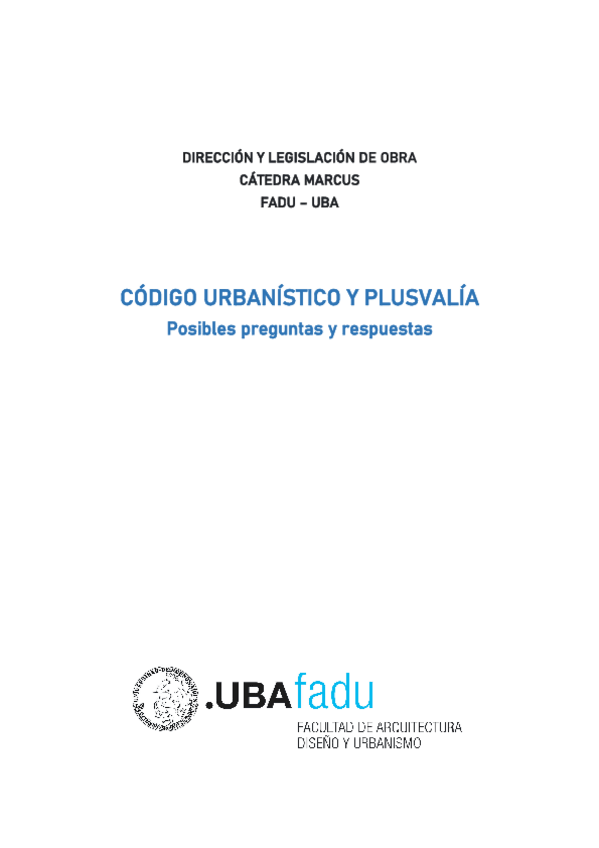 Posibles preguntas y respuestas sobre Código Urbanístico y Plusvalía. Dirección y Legislación de Obra, Cátedra Marcus.