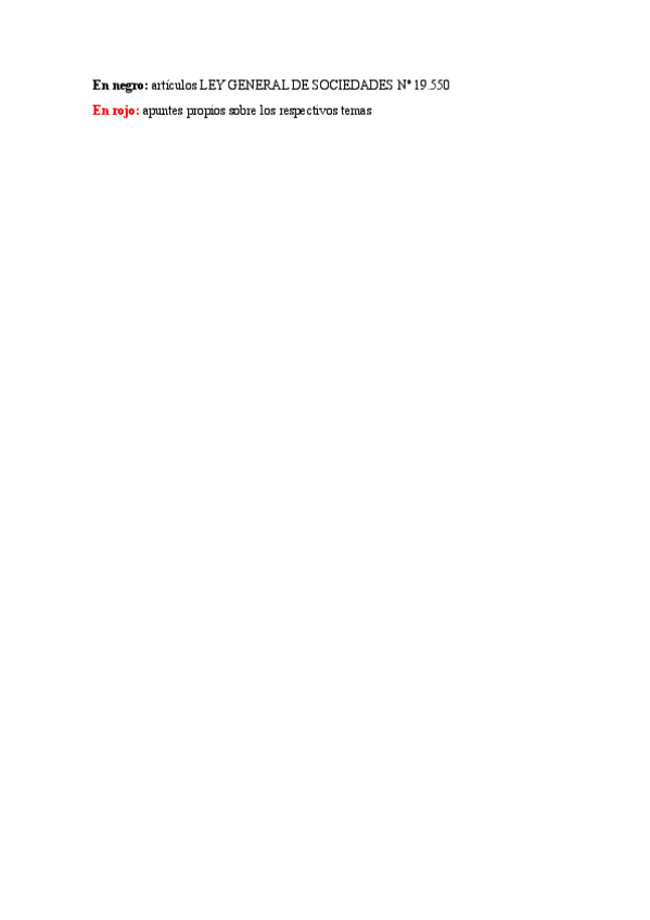 Arículos y apuntes de clase sobre: LEY GENERAL DE SOCIEDADES Nº 19.550: a) De disposiciones generales: 1-117 b) De sociedades en particular: - Sociedad Colectiva: 125-133 - Sociedad en Comandita Simple: 134-140 - Sociedad de Capital e Industria: 141-145