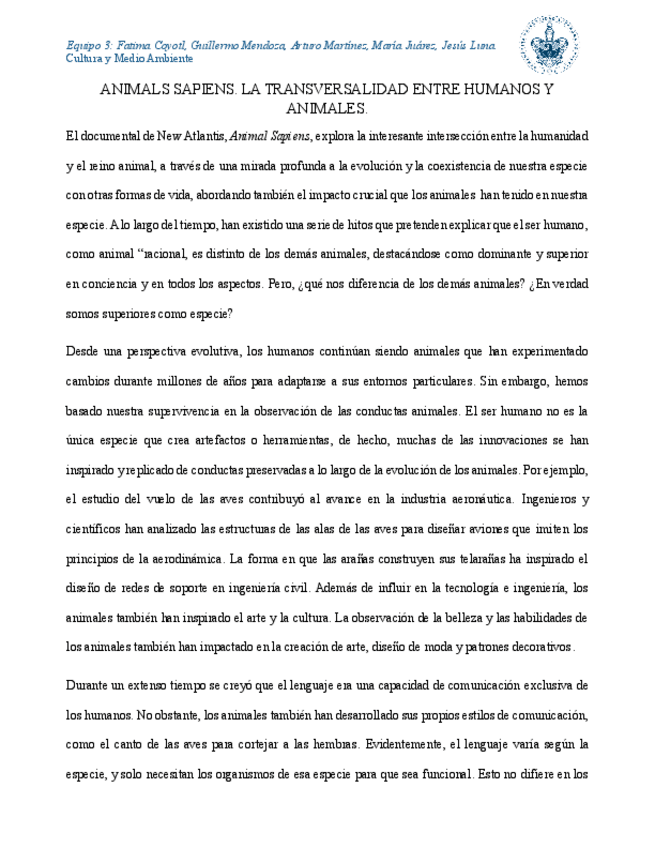 He publicado nuevos trabajos de 1º Cultura y medio ambiente: Ensayo-ANIMAL-SAPIENS.pdf