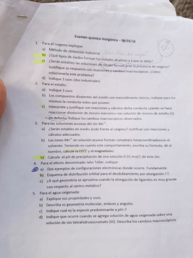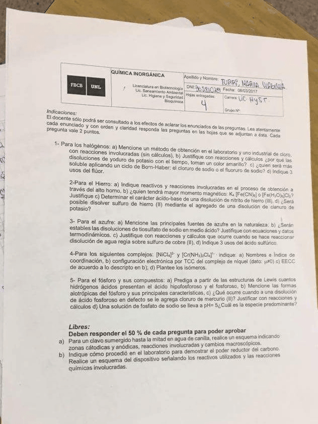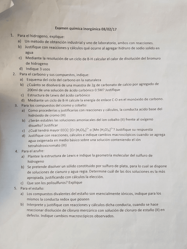 examenes de quimica inorganica