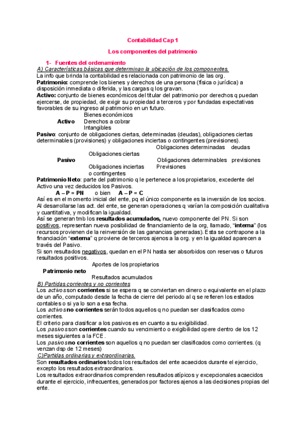 Resumen: componentes del patrimonio, registración de compra/venta de bienes y servicios, movimiento de fondos,