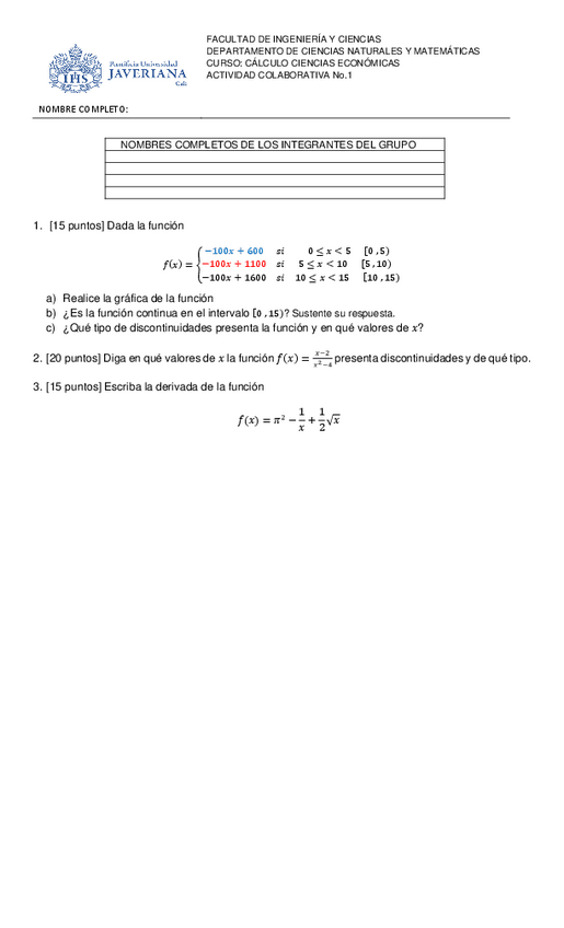 He publicado nuevos ejercicios de 2º Cálculo Integral para Administradores: TALLER-CALCULO-FUNCIONES.pdf