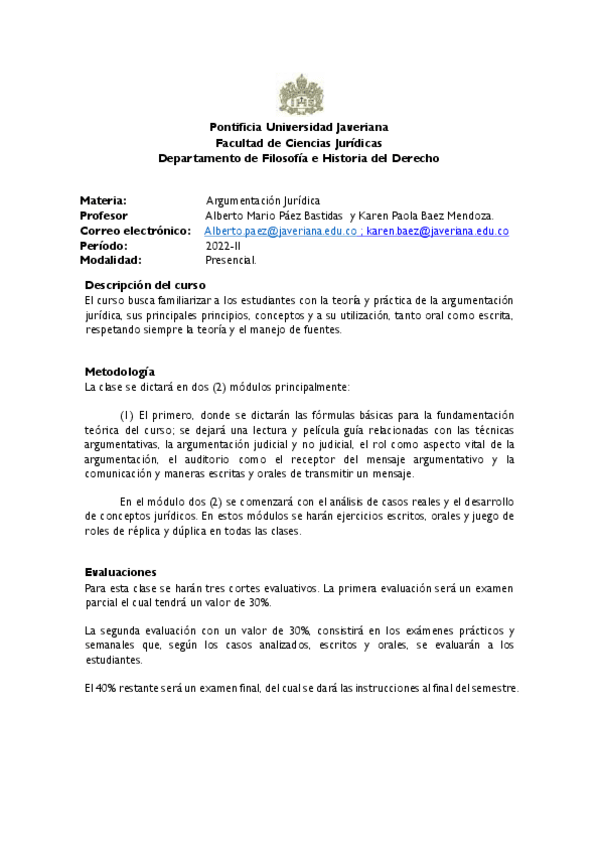 Asignaturas de Derecho (PUJ)