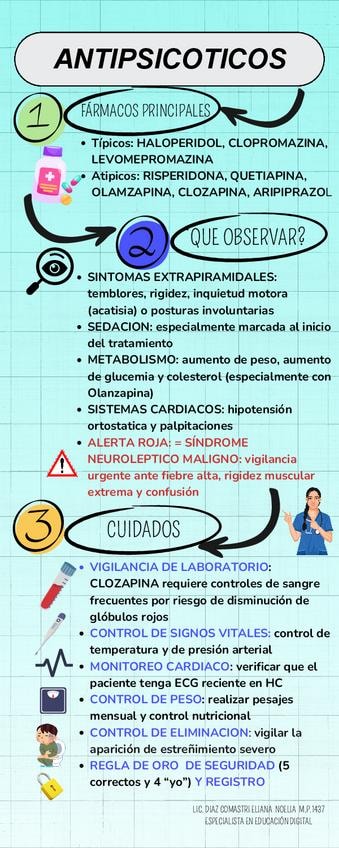 Guía visual completa sobre la seguridad en la administración de Psicofármacos. Incluye infografias detalladas, mecanismos de acción y cuidados esenciales. Ideal para repaso rápido y practica clínica