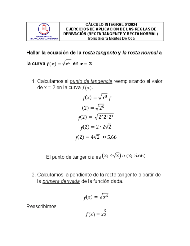 He publicado nuevos ejercicios de 1º Cálculo Diferencial: Derivadas-Recta-tangente-y-recta-normal.pdf